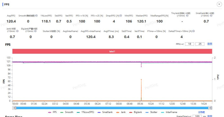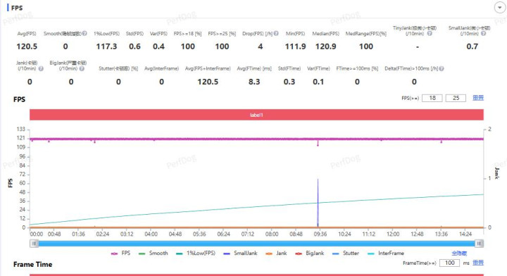(此为荣耀500 Pro) 在我们一局游戏回放中,开启幻影稳帧,荣耀500系列的平均游戏帧数都达到了120帧以上,稳帧指数均为惊人的0!,1%low帧在115帧以上,这是绝对的超满帧。