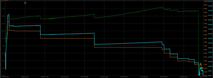 这张图则是荣耀500系列两款手机的表现。 我们可以看出来,荣耀500系列对比Reno 15 Pro,前者采用的是更高电压,更低电流的充电模式。最大充电功率是Reno 15 Pro要更高。